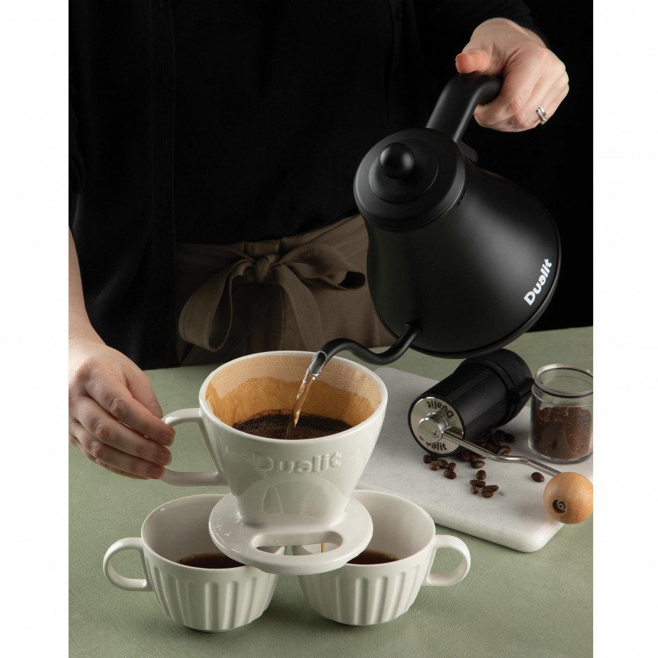 Water heeft de neiging om te snel uit een traditionele waterkoker te gutsen om over koffie te schenken, dus Dualit’s Pour Over Kettle is ideaal om dit tegen te gaan.