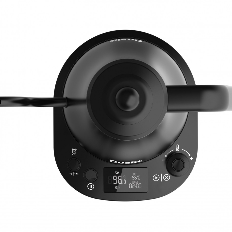 Bij de Dualit’s Pour Over Kettle kan je de temperatuur per graad worden aangepast van 38°C tot 100°C, voor volledige controle.